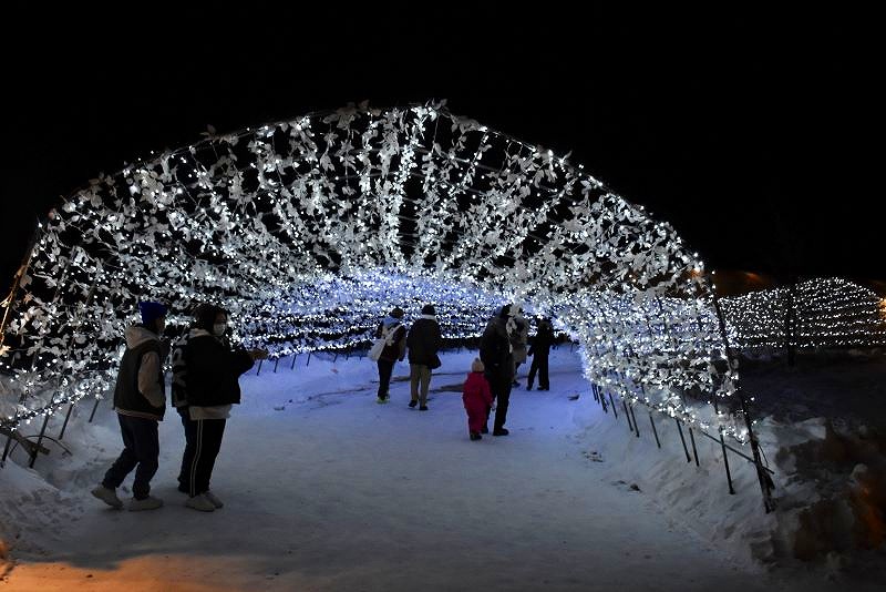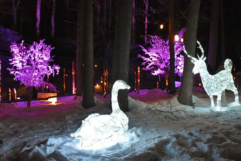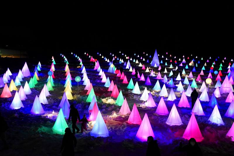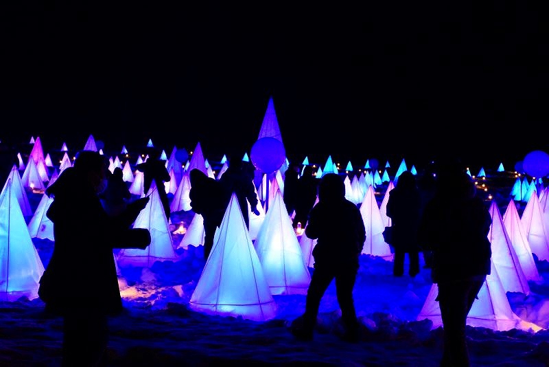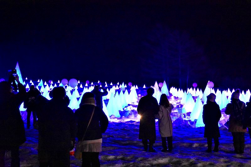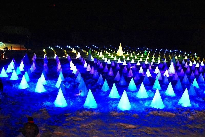 1月28日から2月19日まで(20日~26日は団体客専用)の期間中、毎日午後7時から9時に、LEDを内蔵した三角すいや球体のオブジェが音楽に合わせて点灯する光のショーが開かれます。