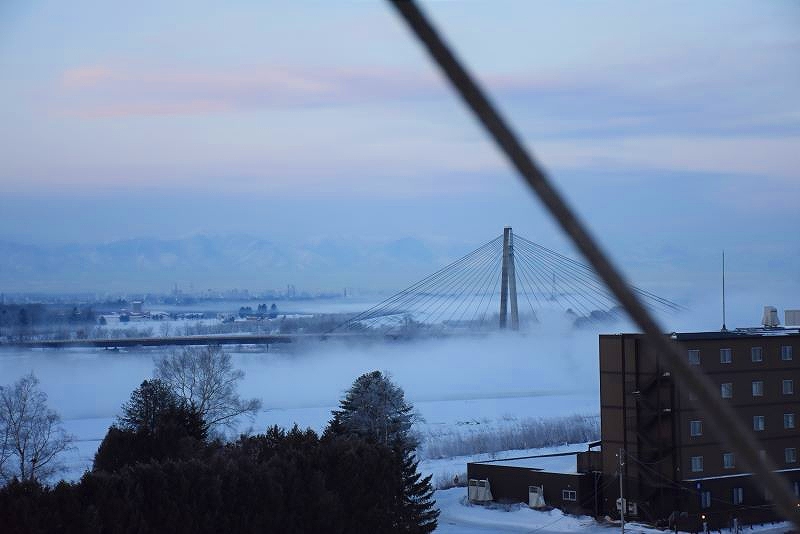 冬の北海道では気温が極端に低くなった朝、川と大気の温度差によって川面に霧が発生します。この霧が蛇行して流れる十勝川の形に沿って流れるため、その姿から地元では「雲龍」と呼んでいるそうです。