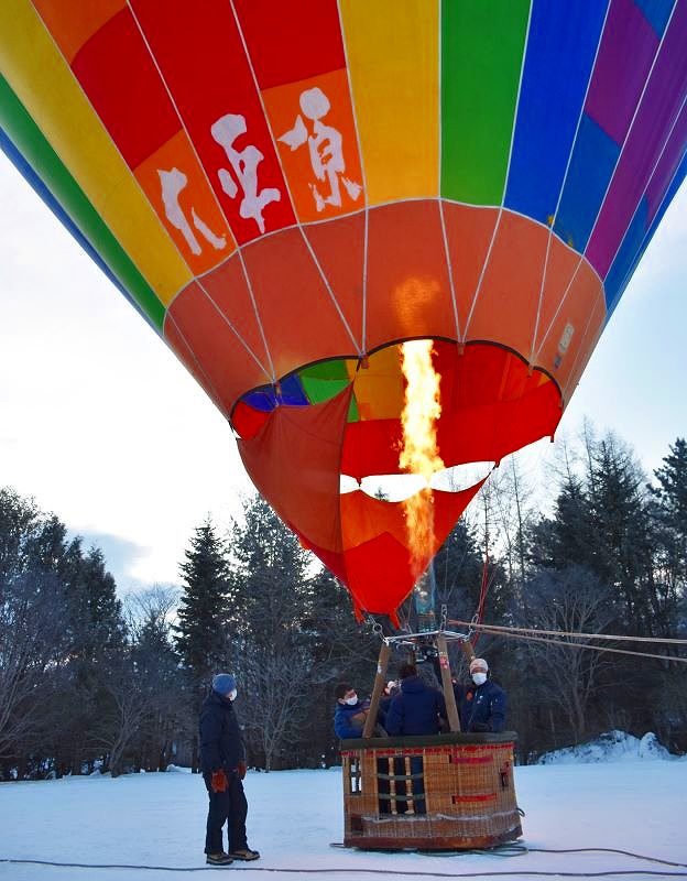 この日の午前7時前の気温はマイナス20度で、ほぼ無風の絶好の熱気球日より。