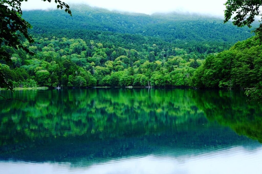 そしてその雌阿寒岳の麓に佇むのが、「神秘の湖=オンネトー」。季節や時間、天気でその色を変える事から「五色沼」とも呼ばれる周囲2.5キロの小さな湖です。冬の始め、全面結氷する際には世にも不思議な結氷音を森に響かせ、結氷してから雪が積もるまでのわずか1~2週間「アイスバブル」や湖に沈み眠る太古の木々の姿を見る事ができます。