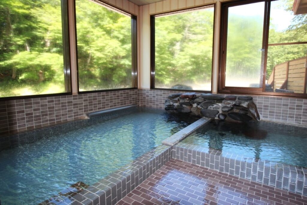 源泉はおよそ60度。泉質は北海道一とも言われる良質のアルカリ泉で、もちろん源泉かけ流し。内湯は高温と低温の2種類で、露天風呂は男女それぞれと、湯あみ着を着用しての混浴風呂「巨岩の湯」があります。