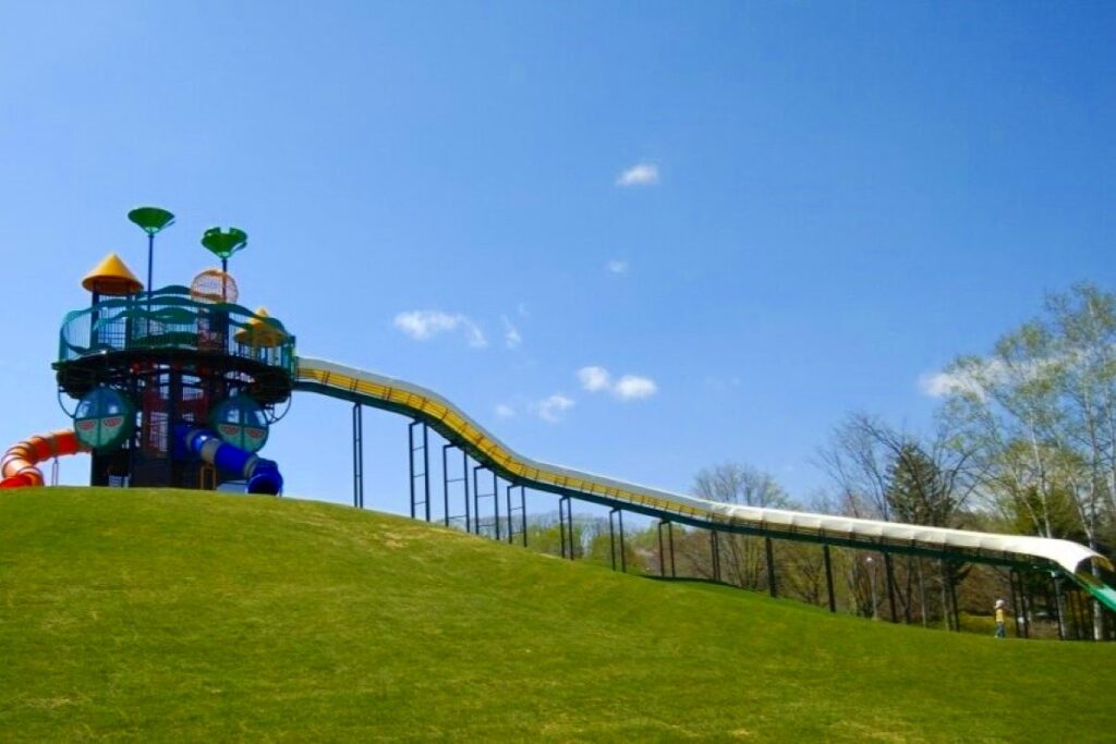 足寄市街の小高い丘「里見が丘」にある「里見が丘公園」には、キャンプ場、BBQガーデン、総合体育館、温水プール、野球場、陸上競技場、多目的広場など数多くの施設が整っており、中でも「ふわふわドーム」や「遊水路」、さまざまな遊具は、子どもたちに大人気。夏場はたくさんの親子連れがお弁当持参で思い思いに過ごす姿が見られます。中でも「お山の遊具」は巨大な滑り台で子どもたちは大好き。夏になると遊具場は子どもたちの歓声で溢れます。