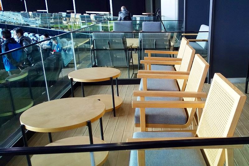 ゆっくり飲食しながら試合を見ることができる、こんな感じの席もあります。