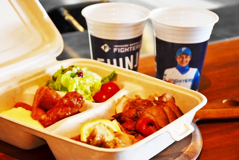 イチ押しは、日ハムの新庄剛志監督がオススメする「新庄監督肉乃劇場」です。「ニクハム」の語呂合わせの2986円です。鶏、豚、牛の各グリルと、シャウエッセンとソーセージ「モーニングサーブ」が各2本、そしてソフトドリンク2杯が付いています。ドリンクのカップは、新庄監督が描かれた特別仕様なので、記念になりますよ。