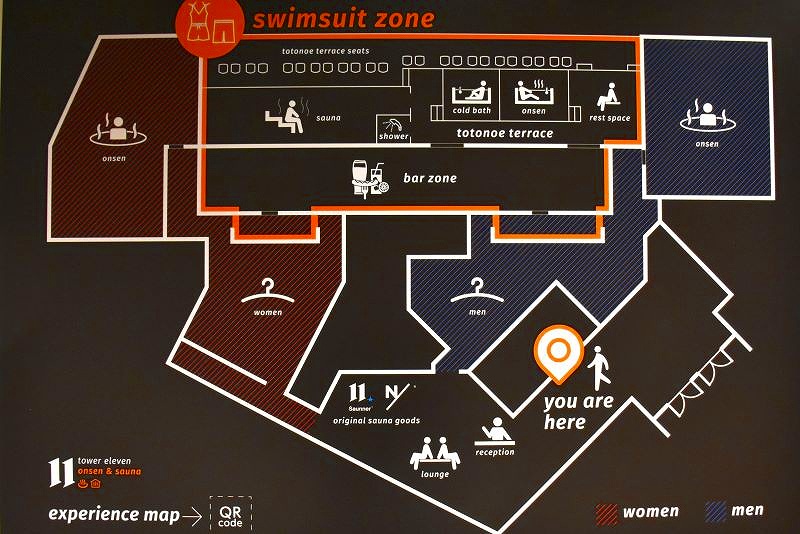 男女別の内湯と、男女混浴の水着着用ゾーンがあります。水着着用ゾーンは半屋外になっていて、サウナもこのゾーン内にあります。