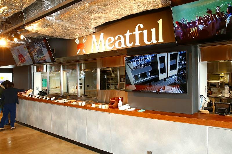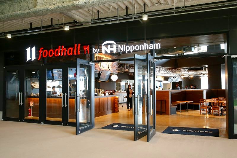 1階のフードホールは、日本ハムが調達した食材を使った3つの店舗で構成されています。