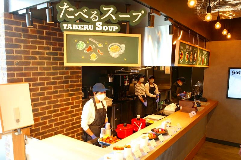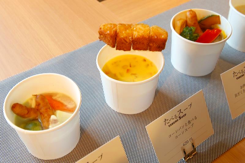 野菜がたっぷり入ったポトフや、牛骨を炊いたスープに北海道の玉ネギを丸ごと入れたオニオンスープ、本格的な味が楽しめるスパイシースープカレーなど温かいメニューのほか、北海道の牛乳を使ったスイーツもあります。