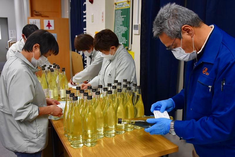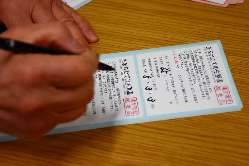 アルコール度数も日によって変わるので、上槽した後に測定して、1枚ずつラベルに手書きで記入しています。