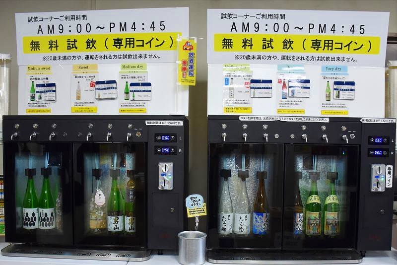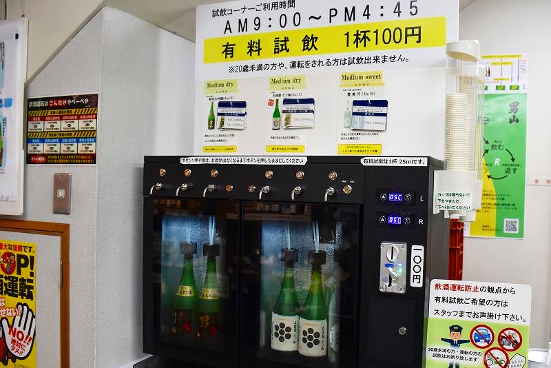 売店コーナーには、季節の限定商品や蔵元でしか買えない商品もたくさん並んでいます。試飲コーナーもありますよ。