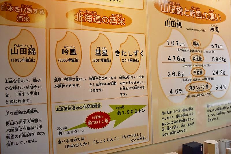 男山のはじまりは、創業者の初代山崎与吉さんが札幌で造り酒屋を始めた1887年(明治20年)です。1899年(明治32年)、旭川まで鉄道が敷かれたのを機に旭川での酒造りを始めます。当時は旭川の中心部で「山崎酒蔵」の名でやっていましたが、1968年に、江戸時代に銘酒として愛飲され、明治初期に廃業した兵庫県伊丹市の蔵元「男山」のれんを継承。現在地に移転、現社名となりました。