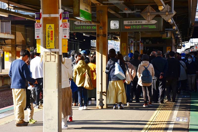 この日、私はJR札幌駅から午後3時11分発の新千歳空港行き快速エアポートに乗り込みました。が、ホームは大混雑。乗り切れずに次の列車を待つ人も出ていました。スーツケースを持って空港を目指す観光客やビジネス客は、少々災難な感じでした。