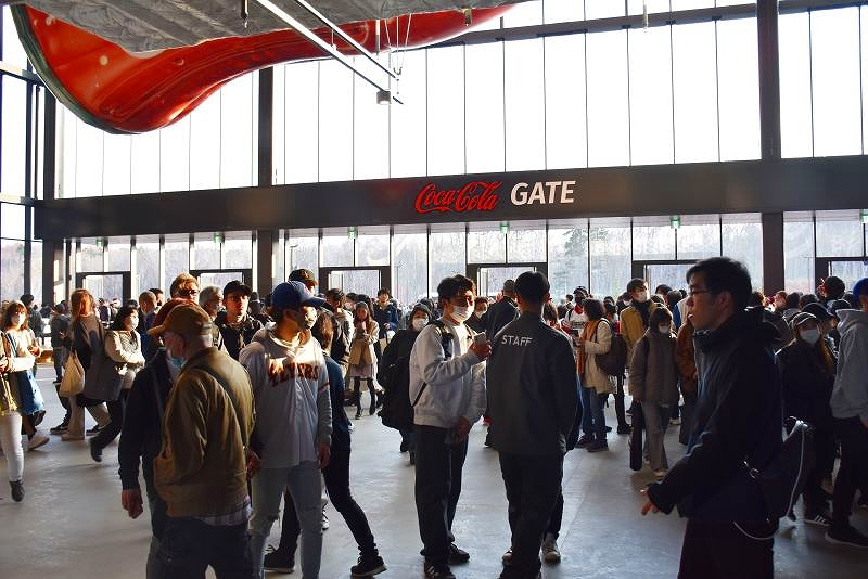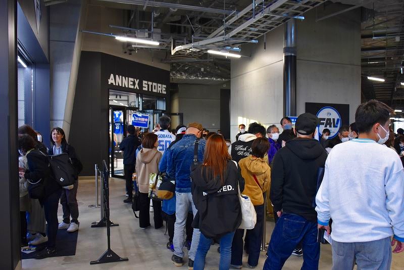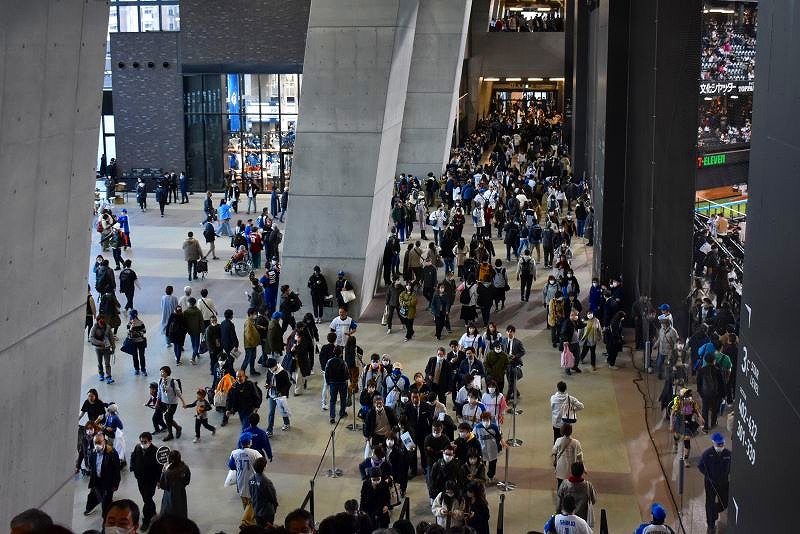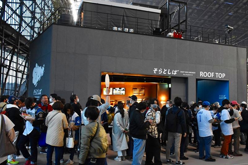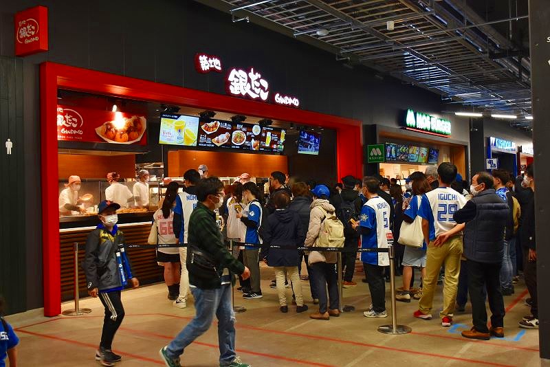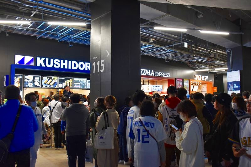 開幕戦&グランドオープンとあって、飲食店やグッズショップは、ひと、ひと、ひと、です。新球場への期待感がわかります。