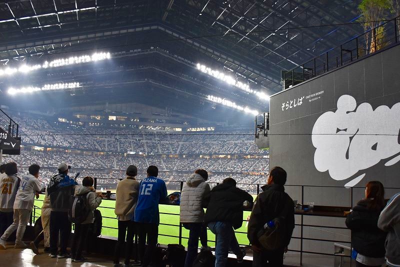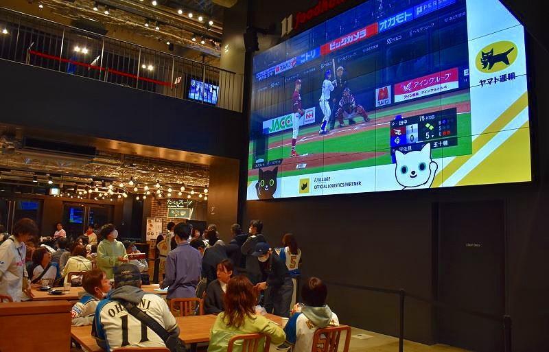 歩きながらフィールドをのぞき込んだり、飲食店内のテレビで試合を観戦したりと、思い思いの場所で、新球場を楽しんでいました。