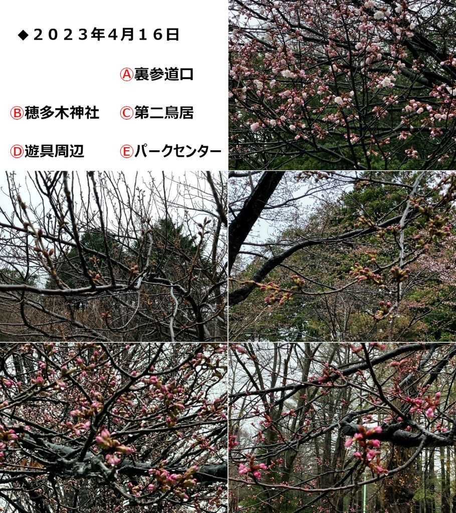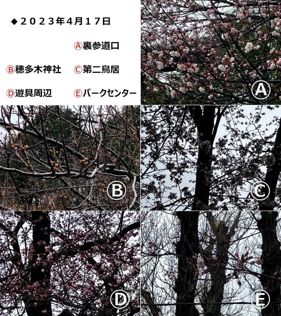 ▽4月17日(月) 雨にも負けず、神宮に続き円山公園でも一部開花