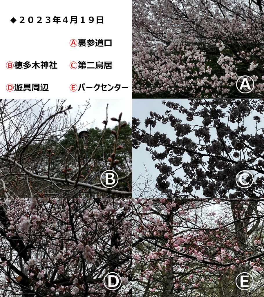 ▽4月19日(水) 時折小雨もちらつく中、開花は順調に進む