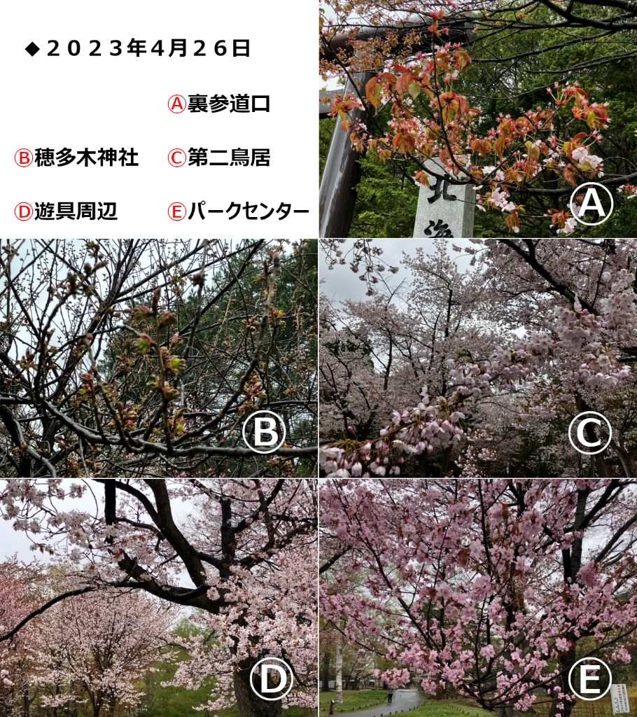北海道神宮・円山公園でまだ咲いているのは一部のヤエザクラとシダレザクラのみとなりましたので、今年の開花状況の更新は本日をもって終了します。
