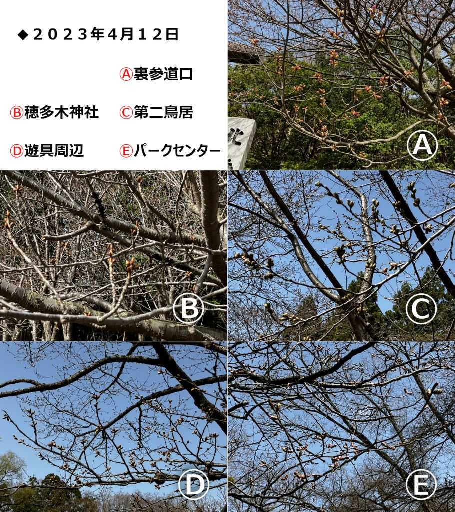 ▽4月12日 北海道神宮の裏参道口は開花間近