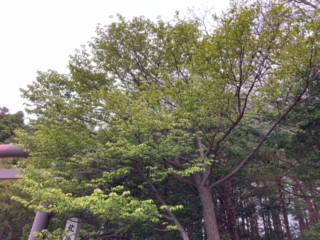 ゴールデンウイークも終わり、例年より2週間程度早く開花した北海道神宮・円山公園の桜も今年は終わりを迎えようとしています。このエリアで大半を占めるエゾヤマザクラとソメイヨシノの花はほぼ完全に散ってしまいました。まだ咲いているのは一部のヤエザクラとシダレザクラのみに。神宮・円山公園の中でいち早く桜が開花した神宮裏参道口・第三鳥居前の桜では花びらは全て散り、代わりに緑色の葉が輝いていました。