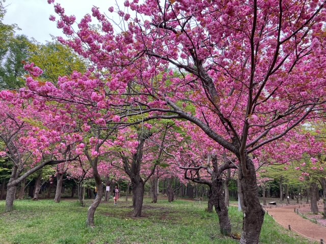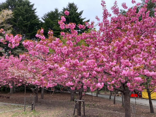 ヤエザクラは開花が遅いため、北海道神宮と円山公園の中では最後まで桜が楽しめる