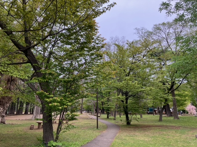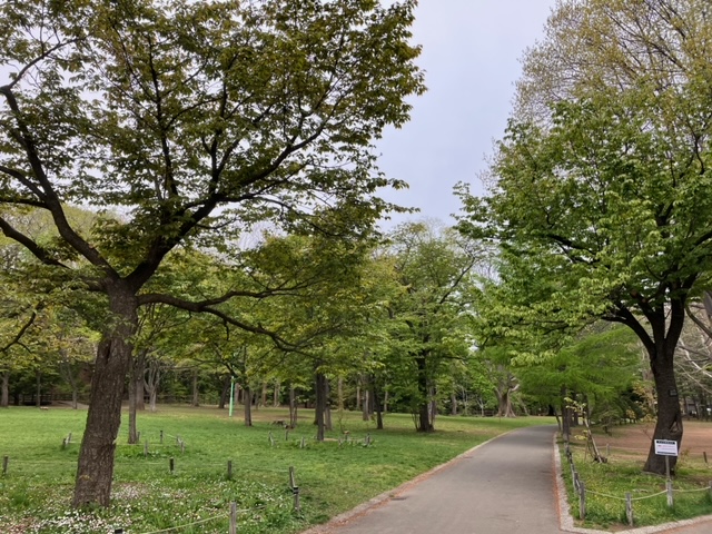 円山公園での宴会のメインスポットであるこの辺りでは、エゾヤマザクラやソメイヨシノが多いのですが、残念ながら全ての桜が散ってしまいました。しかし、今年は5月7日(日)まで飲食や宴会が楽しめたので、昨日は桜が散った中で、名残惜しそうに円山公園での今年最後の宴会を楽しむ人たちも見受けられました。
