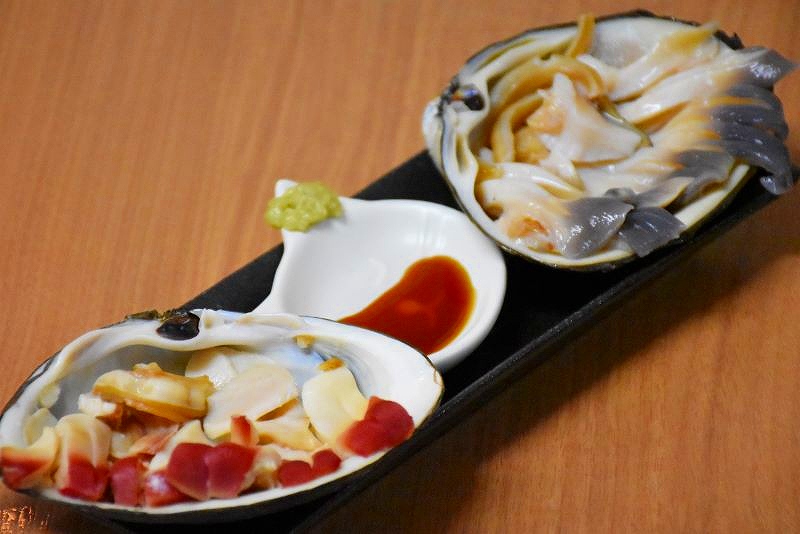 せっかく苫小牧に来たので、特産のホッキを「刺し(生)」と「焼き」の2種類頼みました。セットだとお得です。