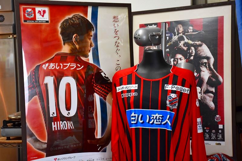 コンサドーレの宮澤裕樹選手は、甥っ子さんだそうで、お店には、ポスターやユニホームが飾られていました。