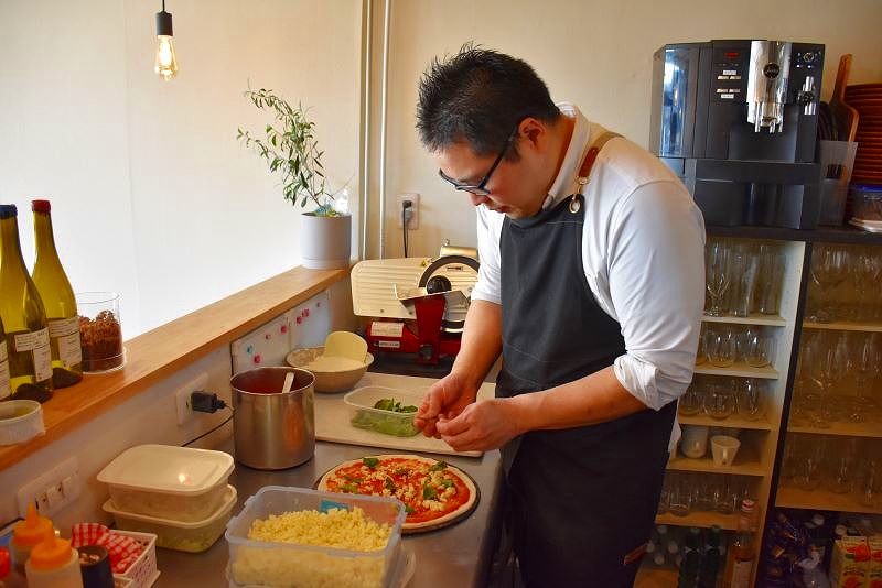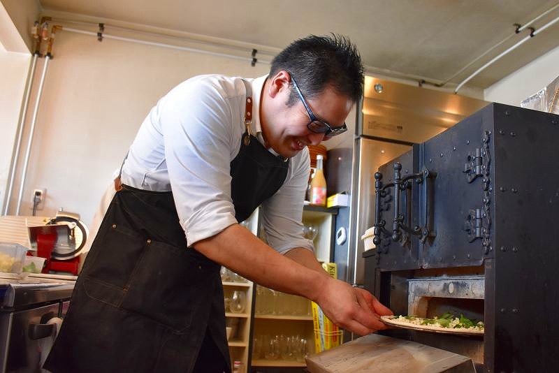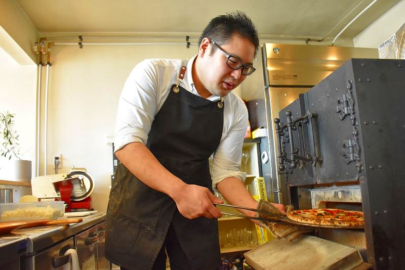 メーン料理の1つであるピザは、本場イタリア産の小麦とトマトを使っています。中山雄貴シェフが店内の窯で焼き上げた、熱々をいただけますよ。