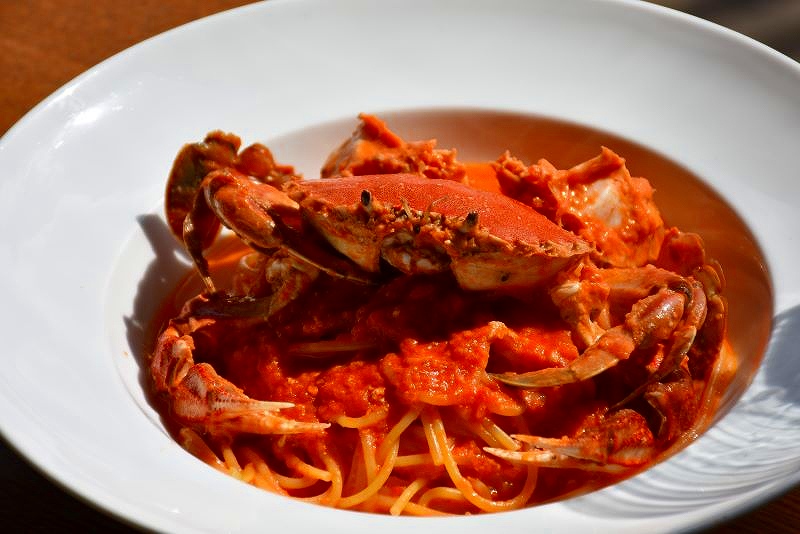 イチ押しメニューは、地元で取れる「ヘラガニのトマトクリームパスタ」です。少々食べづらいですが、その努力は決して無駄にはなりませんので味わってみてください。