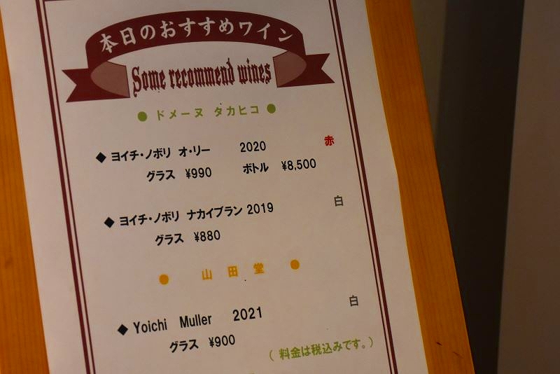 そして、こちらでは何と! 「本日のおすすめワイン」として、ドメーヌタカヒコのジジヤババヤ限定ワインを飲むことができます。