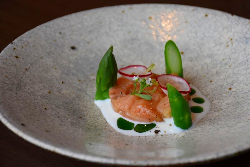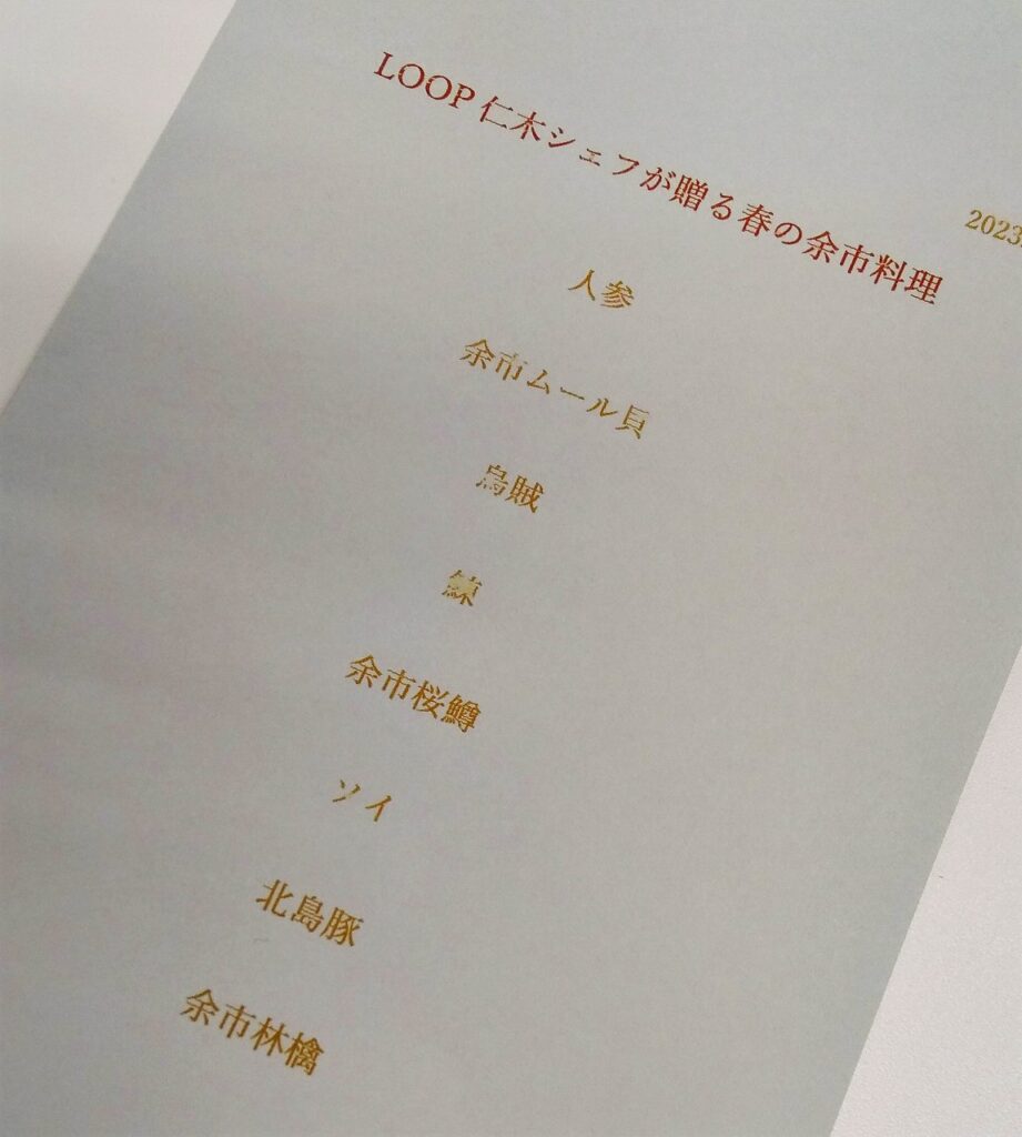 コースはランチ(6600円、全6品)と、ディナー(16500円、全9品)の2種類。この日はランチコース「LOOP仁木シェフが贈る春の余市料理」をいただきました。