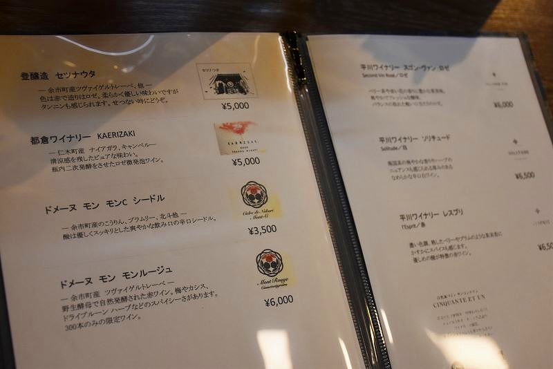 もちろんこちらでも地元の余市・仁木産のワインがボトルで飲めます。しかも非常に良心的な値段設定になっています!