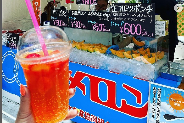 つぶ貝と旅するクシロバコ(釧路市)は釧路の名物「ツブ焼き」を炭火で仕上げて提供。サイダー「リボンナポリン」とカットした赤肉メロンを合わせたまる福ヤマキチ(札幌市)の「メロンポンチ」も昨年に続き、販売されます。