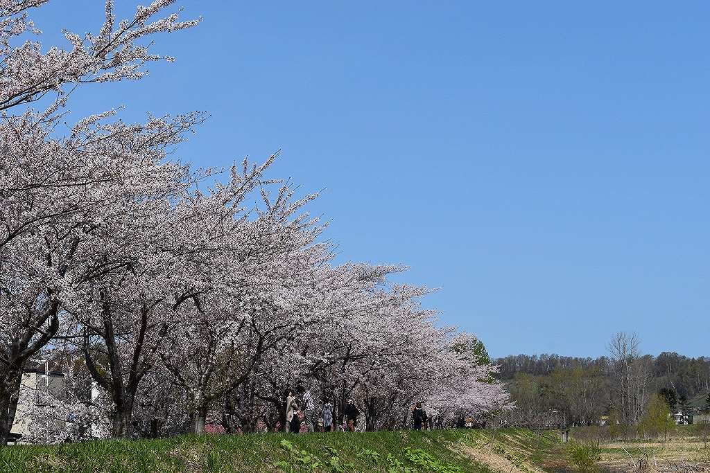 余市川の桜(5月上旬)、果樹園のリンゴの花(5月中旬から下旬)、豊丘エリアのハスの花(7月)、駅前のヒース(7月下旬)