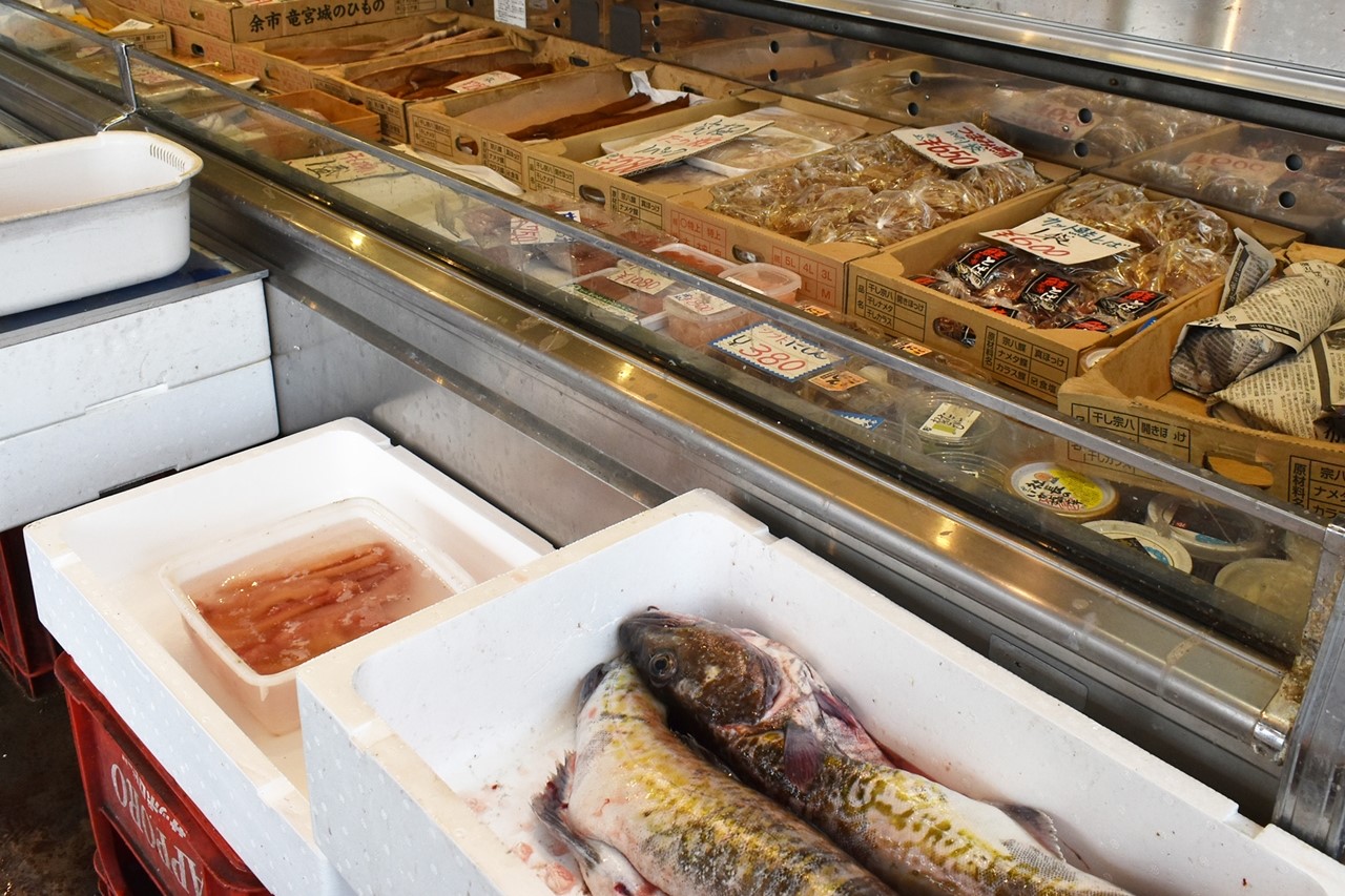 余市町民や一流飲食店にも愛される鮮魚店。水揚げされたばかりの余市の新鮮な魚介が並び、鮮度抜群のものを箱買いすることも可能。