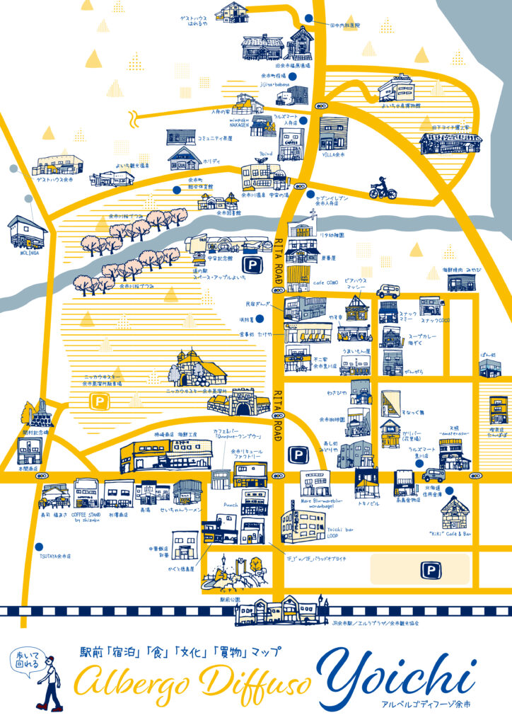 JR余市駅前には歩いて巡ることができるエリアに、目的や滞在時間に合わせて楽しむことができるお店がたくさんあります。ワイン、ランチ、カフェ、お買い物など、それぞれのお店が「余市産」「メイドイン余市」をキーワードに営業しています。お酒に食にスイーツに、テーマを決めて巡るのも楽しい。