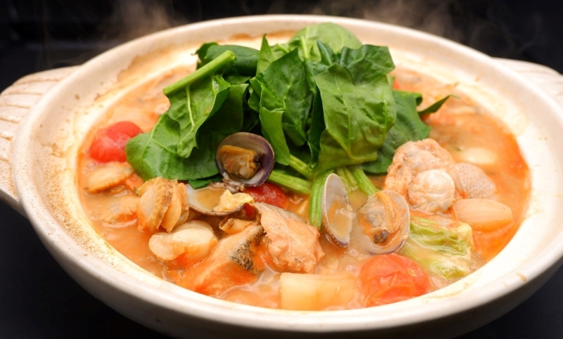 新作の海鮮石狩鍋はフランスの鍋料理ブイヤベースを参考にして、アサリやホタテを煮て、トマト味に仕立てる。奥田さんの助言で、仕上げにミニトマトを入れたところ酸味のキレが増したという。同高2年の渋谷二美(つぐみ)さん(16)は「コクのあるスープを飽きずに楽しめる」と話す。レモン果汁やペッパーソースなどで味の変化も楽しめる。
