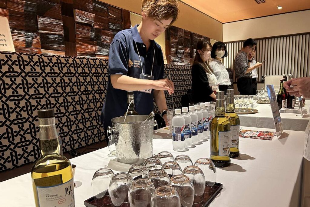 約90人が参加。参加者を6月上旬に募集したところ、数日で完売する人気ぶりでした。ダイニングには、余市ワイナリーとニセコ蒸溜所、上川大雪酒造、ノースタイランドビール、さっぽろ藤野ワイナリー、厚岸蒸溜所の7つの酒造会社が参加し、チケット制でワインやビールなどを販売しました。