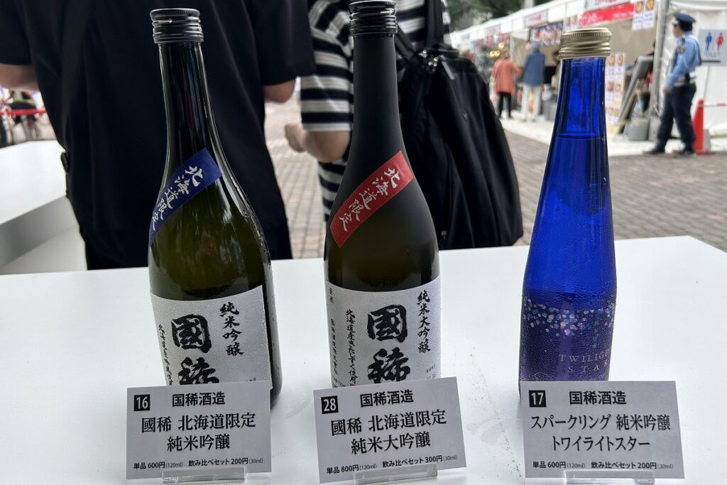 この日は、国稀酒造営業部長の伊藤明則さんがカウンターに。国稀酒造は今回、「國稀 純米吟醸」と「スパークリング純米吟醸トワイライトスター」「國稀 純米大吟醸」の3銘柄を出品。純米吟醸と純米大吟醸は北海道限定販売、スパークリングは通常、酒蔵でしか扱っていません。