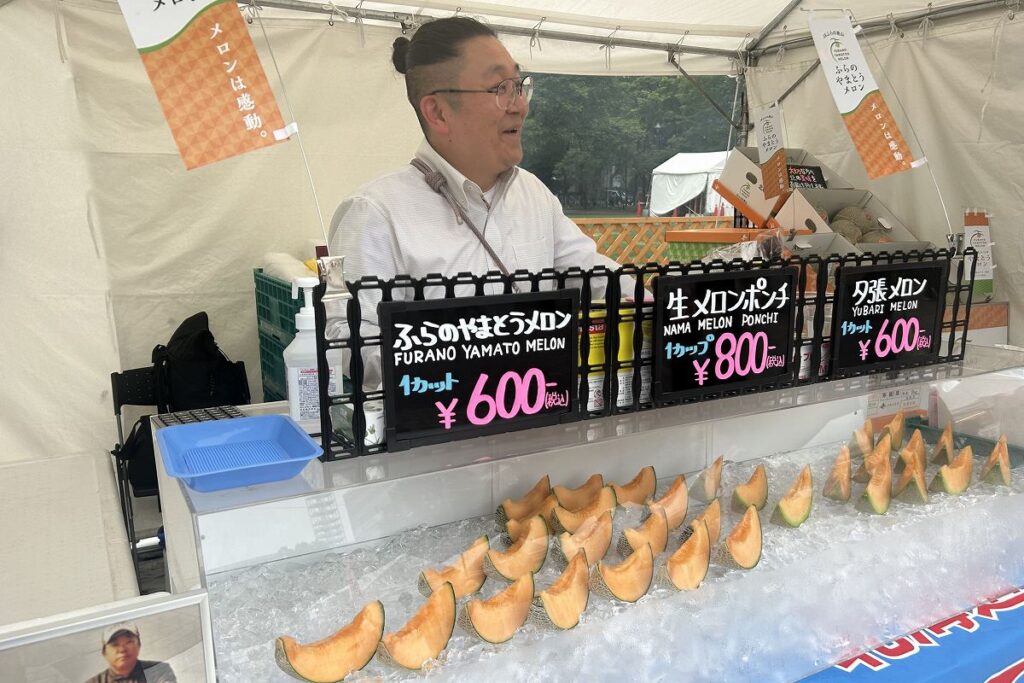 焼き物や揚げ物をお供にお酒を飲んだ締めには、さっぱりとしたフルーツを。まる福ヤマキチ(札幌)は2種類のカットメロンを600円で販売しています。「夕張メロン」はさすがのブランドで、観光客らに安定の人気です。一方の「ふらのやまとうメロン」は富良野市東山の農家数軒がここ数年、つくっている赤肉メロン。「皮の際までオレンジ色の実。残すところがなくて、くまなく甘い」そうです。