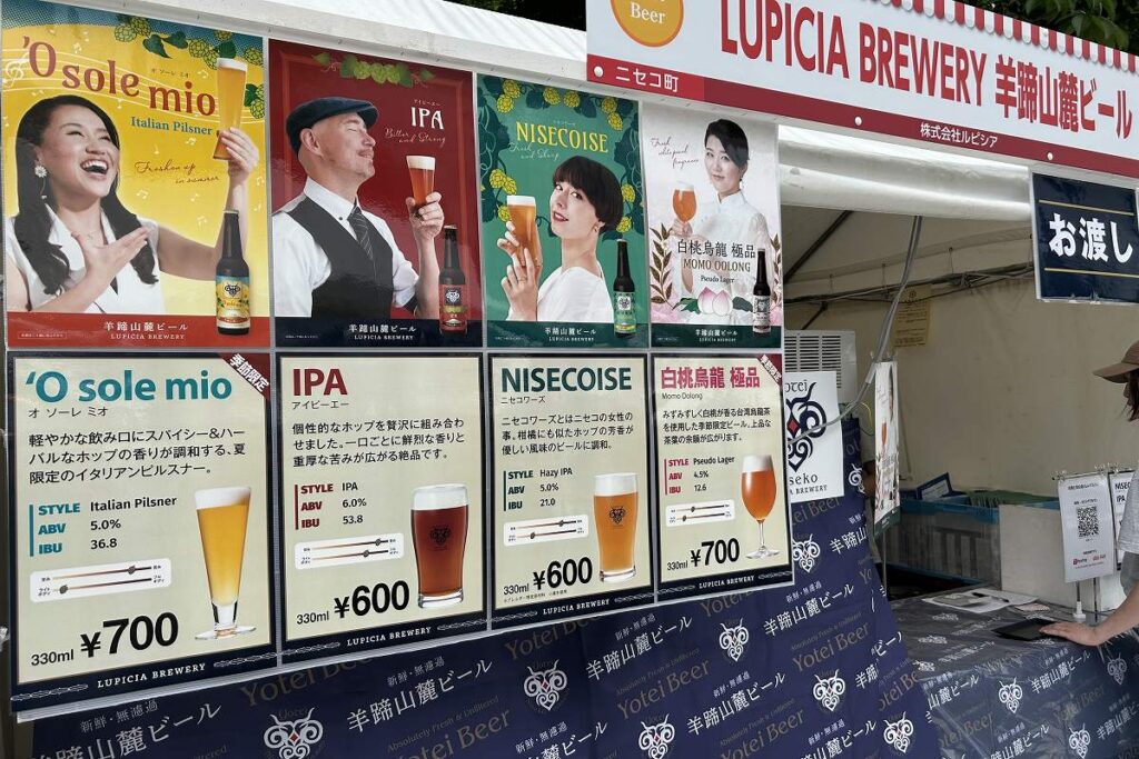 2回目の今年、お酒はクラフトビール8社、ワイン17社、日本酒14社、ウイスキーとジン4社、焼酎・リキュールなど1社の計44社が出店。道内各地のクラフトビールがこれだけそろう屋外イベントも少なく、来場者は各社の飲み比べセットで味を試したり、好みの1杯を見つけてじっくり味わったりしています。