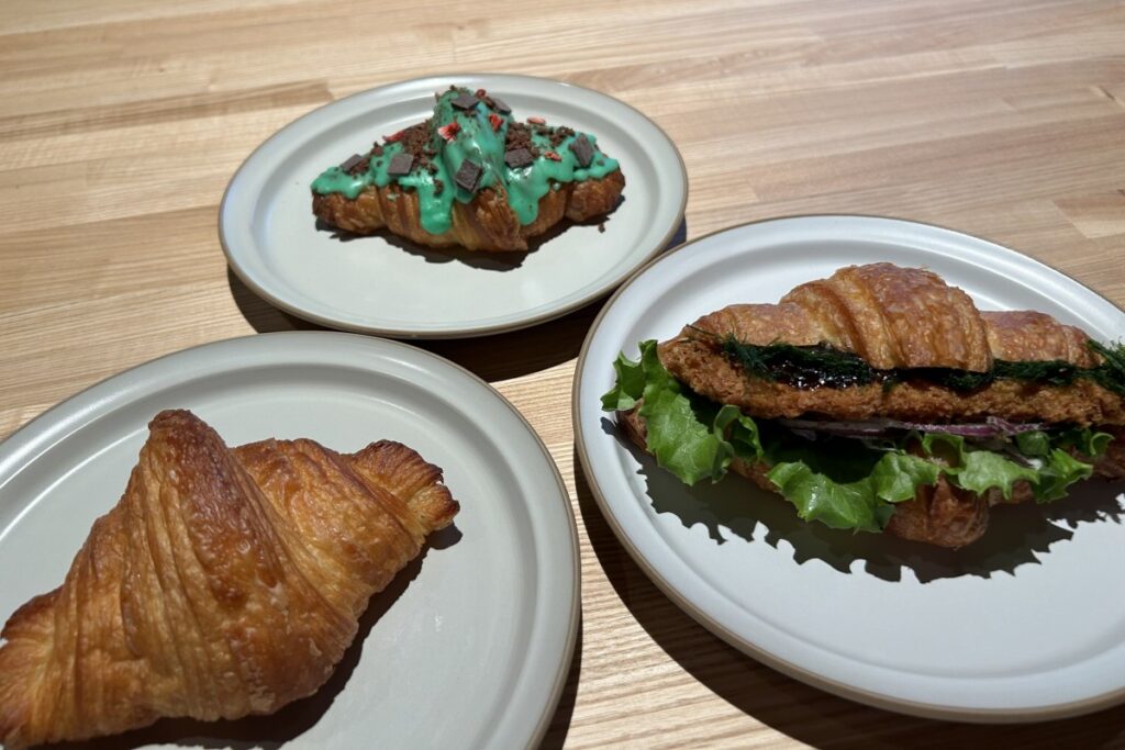 飲食施設としては、「シロクマベーカリー&」が入っています。道産小麦を使ったパンが人気の「シロクマベーカリー」が運営するパンとお酒を楽しめるバルです。プレーンのクロワッサンのほか、チョコミントをかけたクロワッサン、青のりとホッケフライをはさんだクロワッサンサンドなどのほか、ビールやハイボール、ワインなどのアルコールも楽しめます。シャルキュトリー盛り合わせやチーズなどおつまみも販売。ドリンクもフードもすべて、館内どこでも飲食できます。館内にはベンチなど座ることのできる場所がたくさんあるので、ワインやコーヒー片手に、ペンギンや魚を見ながらのんびりと過ごすことができます。