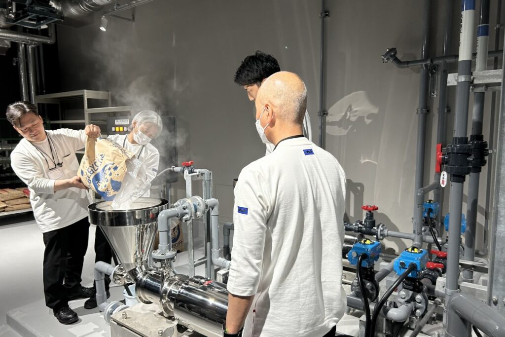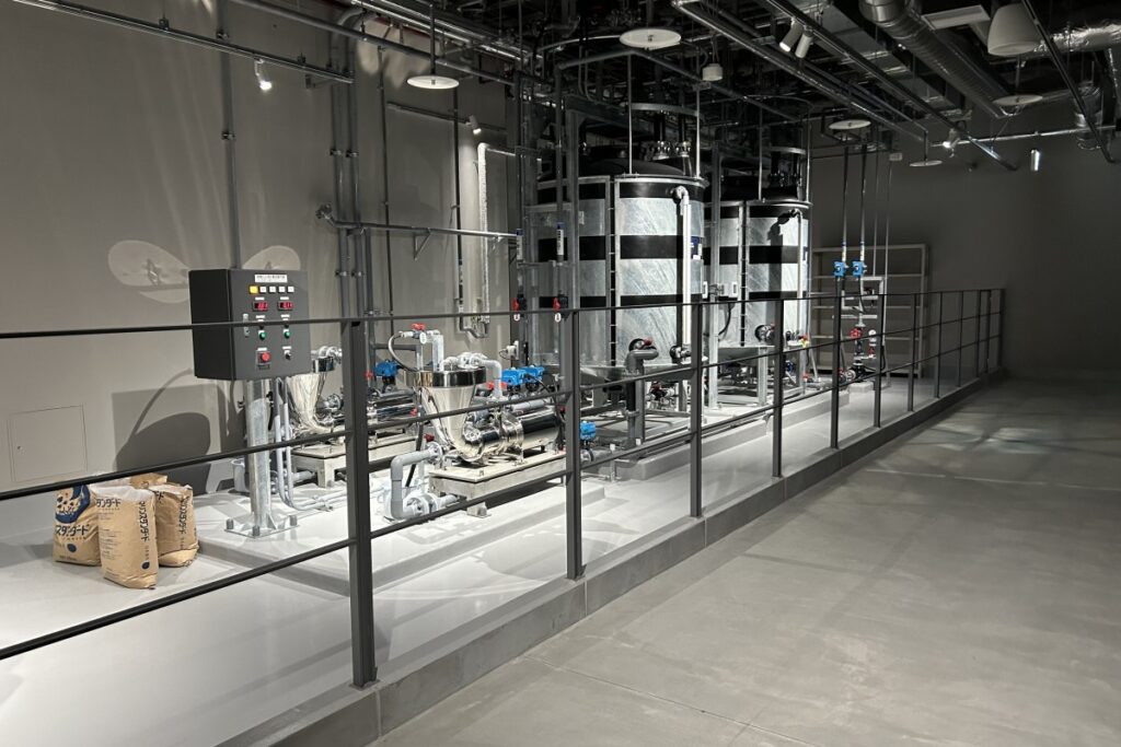 エントランスのある4階に戻ります。アオアオは、水族館では通常見られないバックヤードの様子を見られるのも特徴です。飼育員さんたちがえさの準備をしたり、水草などを育てたりする様子もガラス越しに見ることができます。札幌市中心部にあるアオアオでは、海水は塩と水で作っており、海水を作る様子も公開しています。3トンの大きなタンク2基が備え付けられ、1基に塩約100キロを入れて、人工海水をつくります。