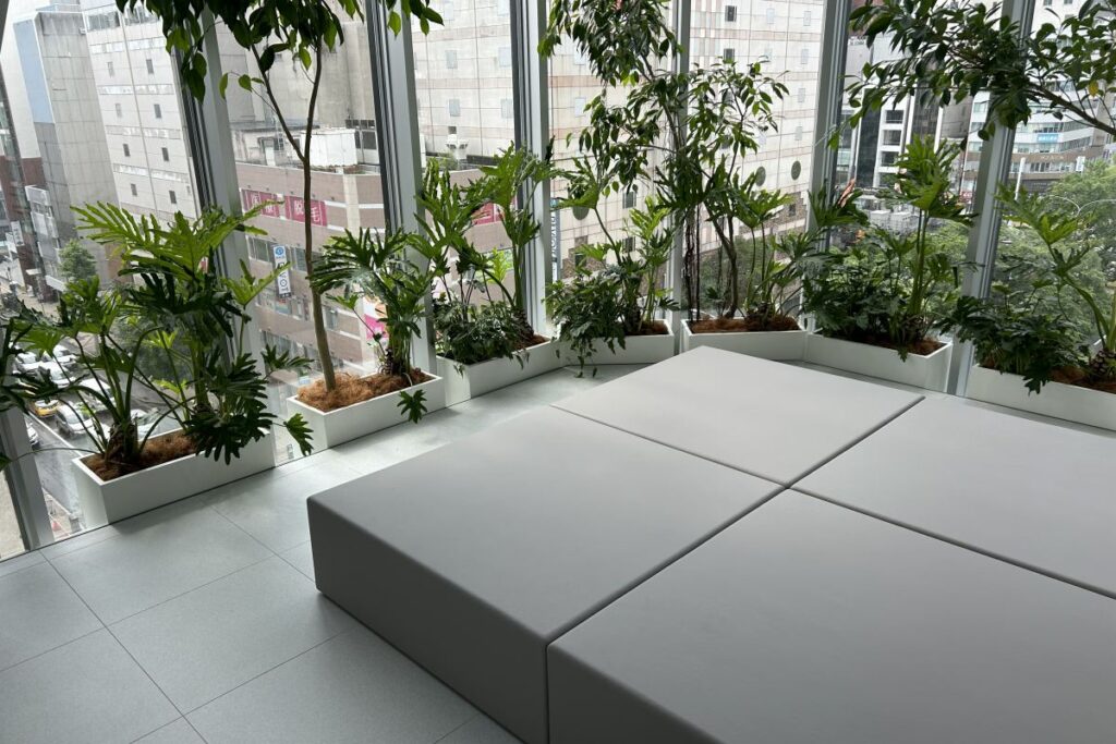 テーブルと椅子を備え付けたコワーキングスペースもあり、休憩したり食事をとったりするほか、水族館を見る合間にちょっとメールをチェックすることもできそうです。