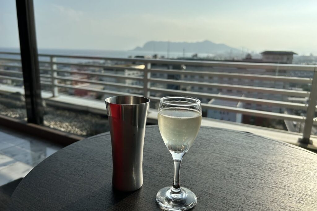 大浴場と同じフロアに「スカイサロンBOUKYOU」があります。周囲はぐるりとガラス張りです。ホテルは周囲よりちょっと高台に建っており、13階からは湯の川地区のパノラマビューを楽しめます。時間帯によって、津軽半島や夕日、夜景などさまざまな表情を見せます。サロンには、生ビールやスパークリングワイン、ソフトドリンク、ソフトクリームがあり、セルフサービスですが無料です。午後2時から午後8時まで。