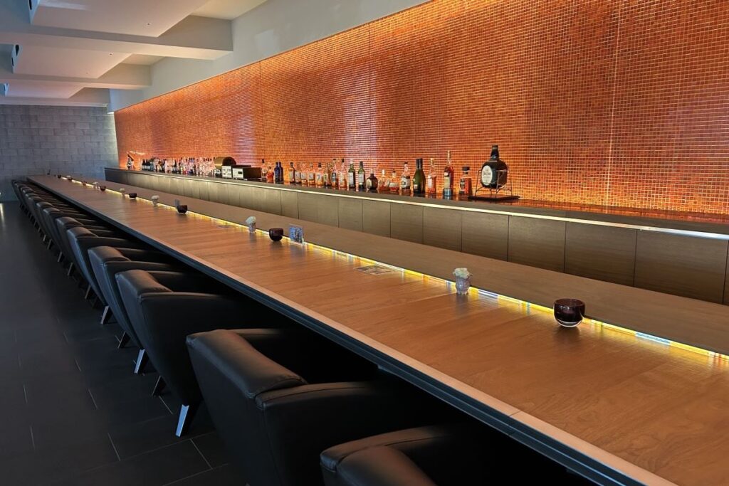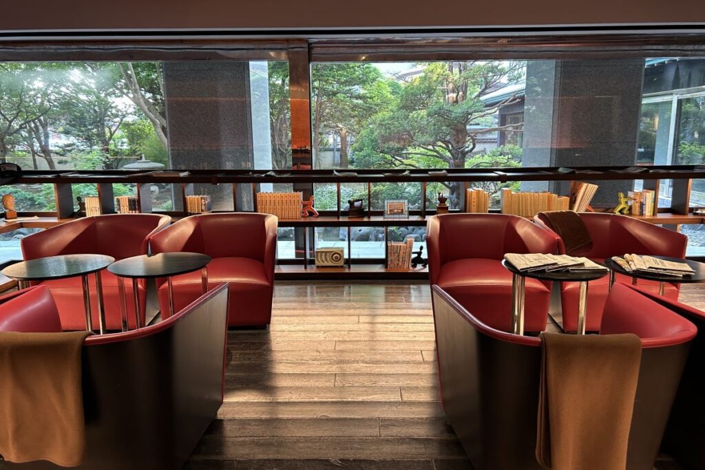 ホテル1階には、セルフサービスで無料でソフトドリンクを楽しめる「ウォーター・サイド・カフェ YUGEN」や午後8時から午前0時まで営業の「BAR LongGood-bye」、ビリヤード台、土産物などを扱うショップなどがあります。ガラス越しには和風庭園が見えます。全体をライトダウンし、時間帯によって赤や青にライトアップされています。1階と6階、9階、11階には「のぐち文庫」と名付けられたライブラリーが設けられています。別料金ですが、エステや岩盤浴も備えています。