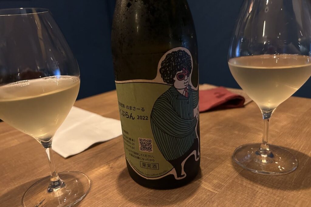 函館の「農楽蔵」が函館市内限定で出している「葡萄戦隊のまさーる はがいくぶらん 2022」を、「限定」につられて、オーダーします。さっぱりしていて飲みやすく、フードに合わせやすそうです。店主の向井廉さんは「自分が好きなので、置いているワインの95%はナチュラルワイン」と言います。