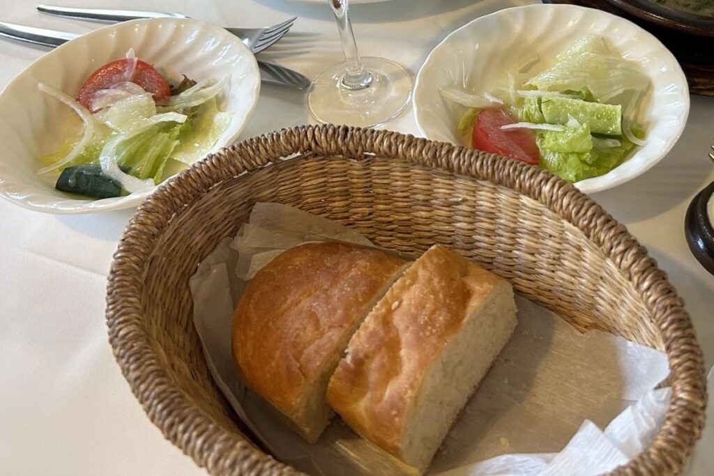 パンは小麦と塩、イーストのみを手ごねした自家製。毎日、店で焼き上げています。バターを付けて食べると、ちょうどいい塩気とバターのまろやかさが強調されます。