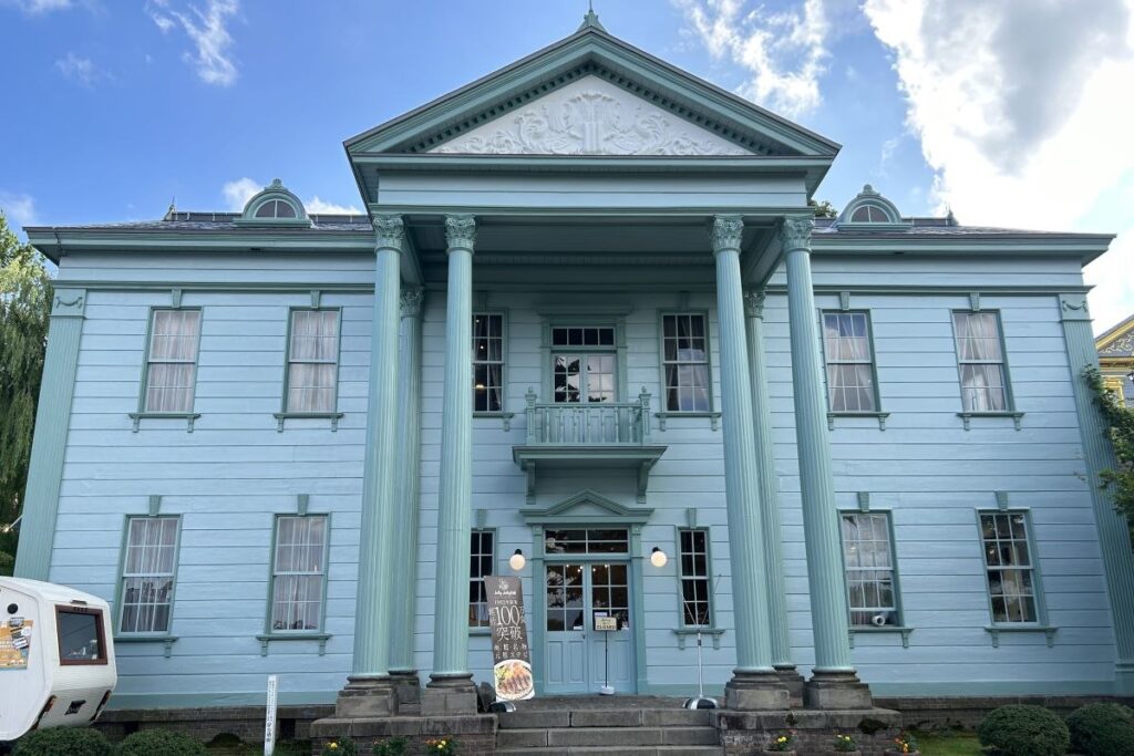元町公園周辺の代表的な存在が、旧函館区公会堂。国の重要文化財です。左右対称で2階にはバルコニーがあり、玄関、左右入り口のポーチの円柱に柱頭飾りがあるなどの特徴があります。1980年に3年かけて修復、2018年から耐震補強も含めた保存修理を実施し、現在は内部も公開されています。