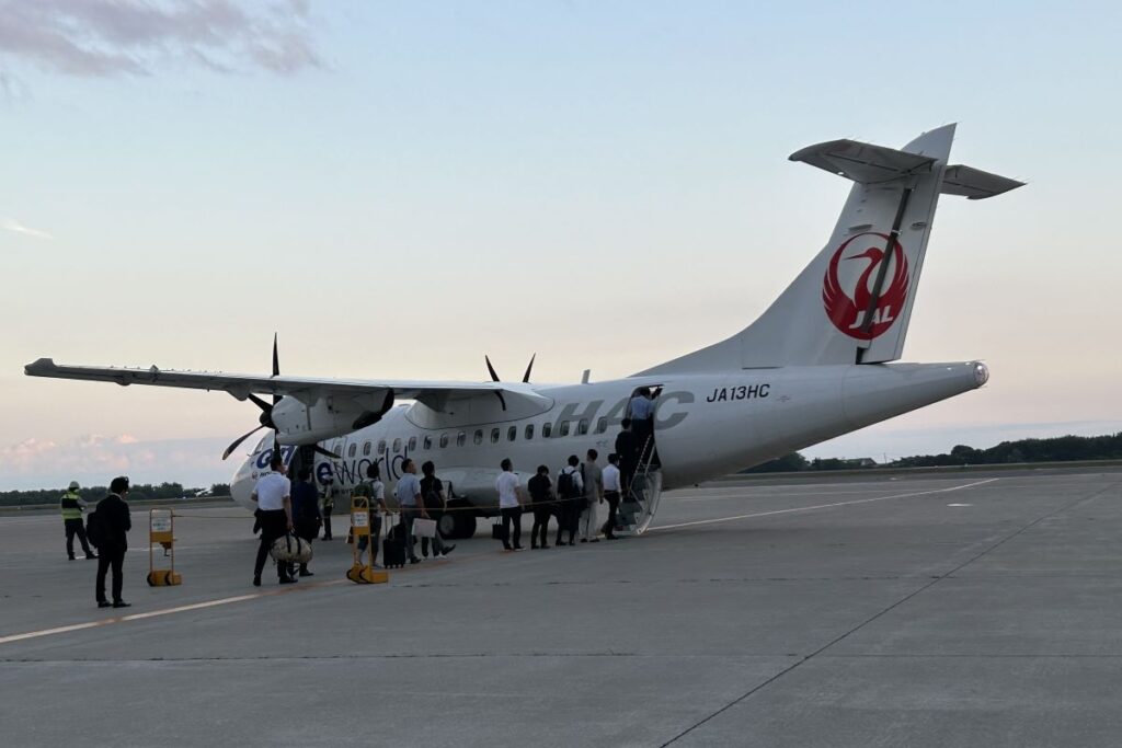 JR函館駅からバスに乗り、約20分。帰りもぜいたくに、飛行機で函館空港から札幌・丘珠空港までひとっ飛びです。その前に、函館空港内に函館出身のロックバンド・GLAYのショップが期間限定でオープンしていると聞いて、立ち寄りました。函館空港の2階にオープン中の「G4 Air Port Space Presented by GLAY」です。