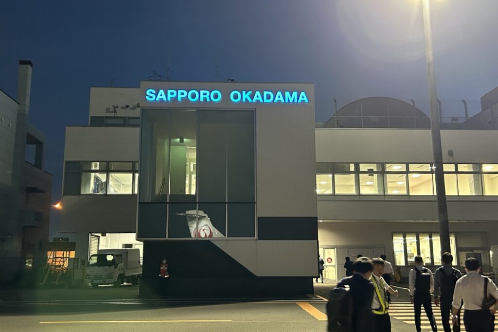 飛行機に乗る時には薄暮でしたが、丘珠に到着すると、夜のとばりが降りていました。